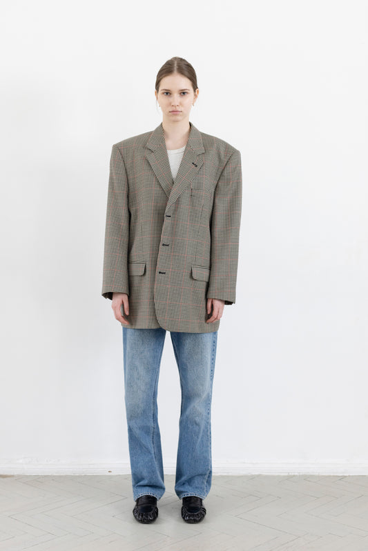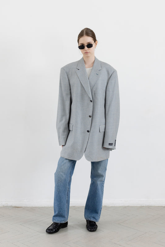 Vintage Baby Blue Houndstooth Silk Wool Blazer