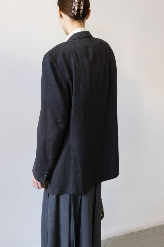 Vintage Hugo Boss Grey Striped Wool & Cashmere Blazer