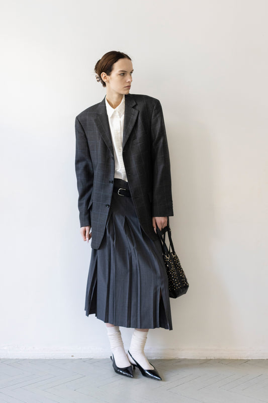 Vintage Grey Windowpane Check Blazer