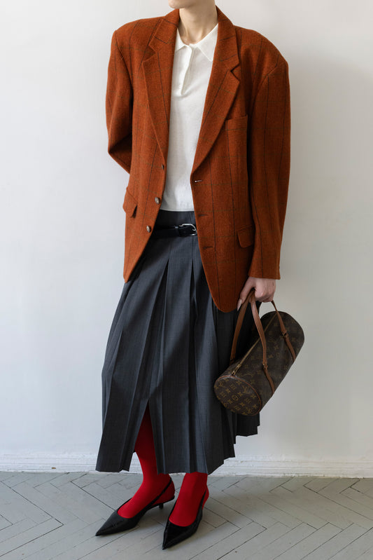 Vintage Brick Red Windowpane Check Wool Blazer