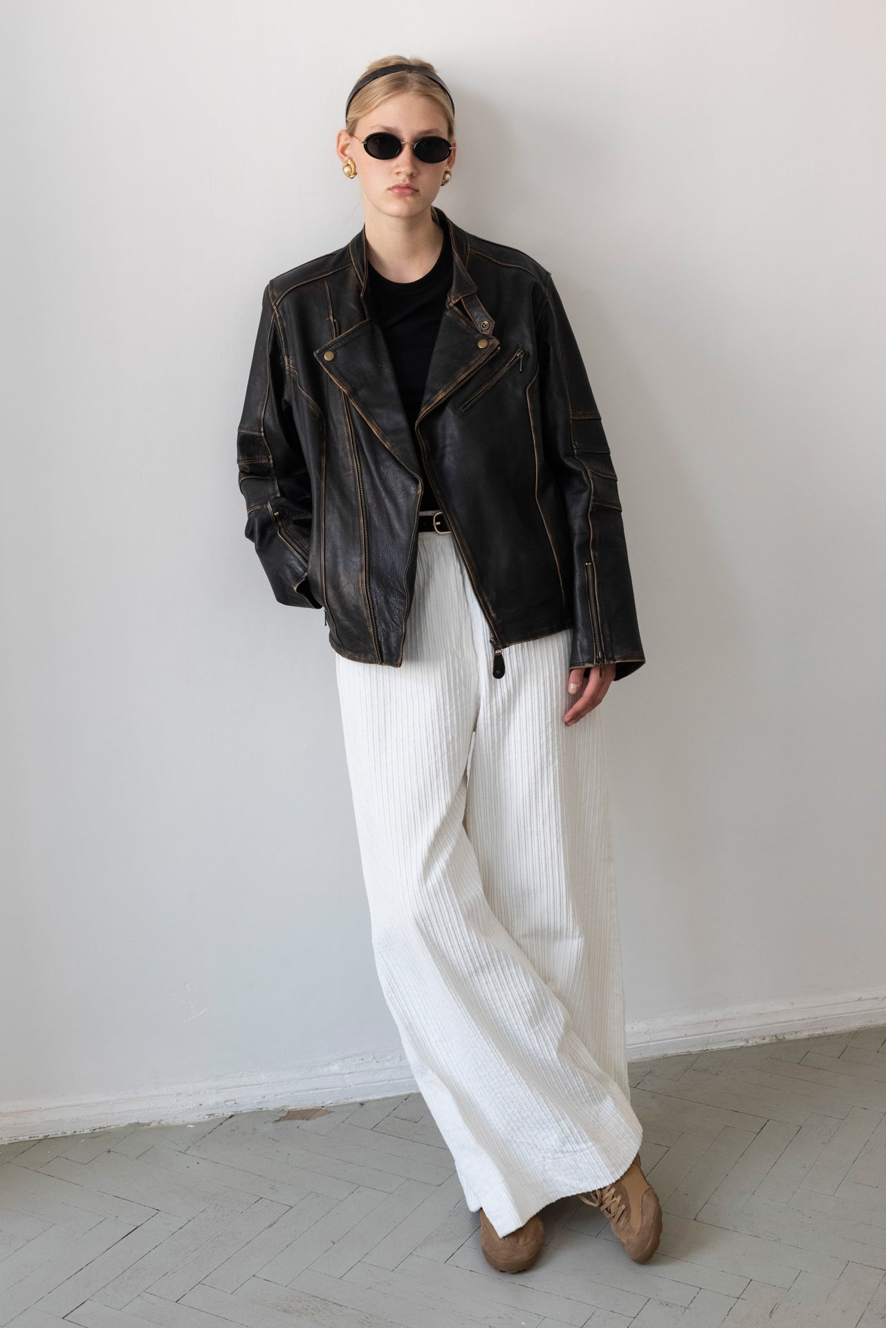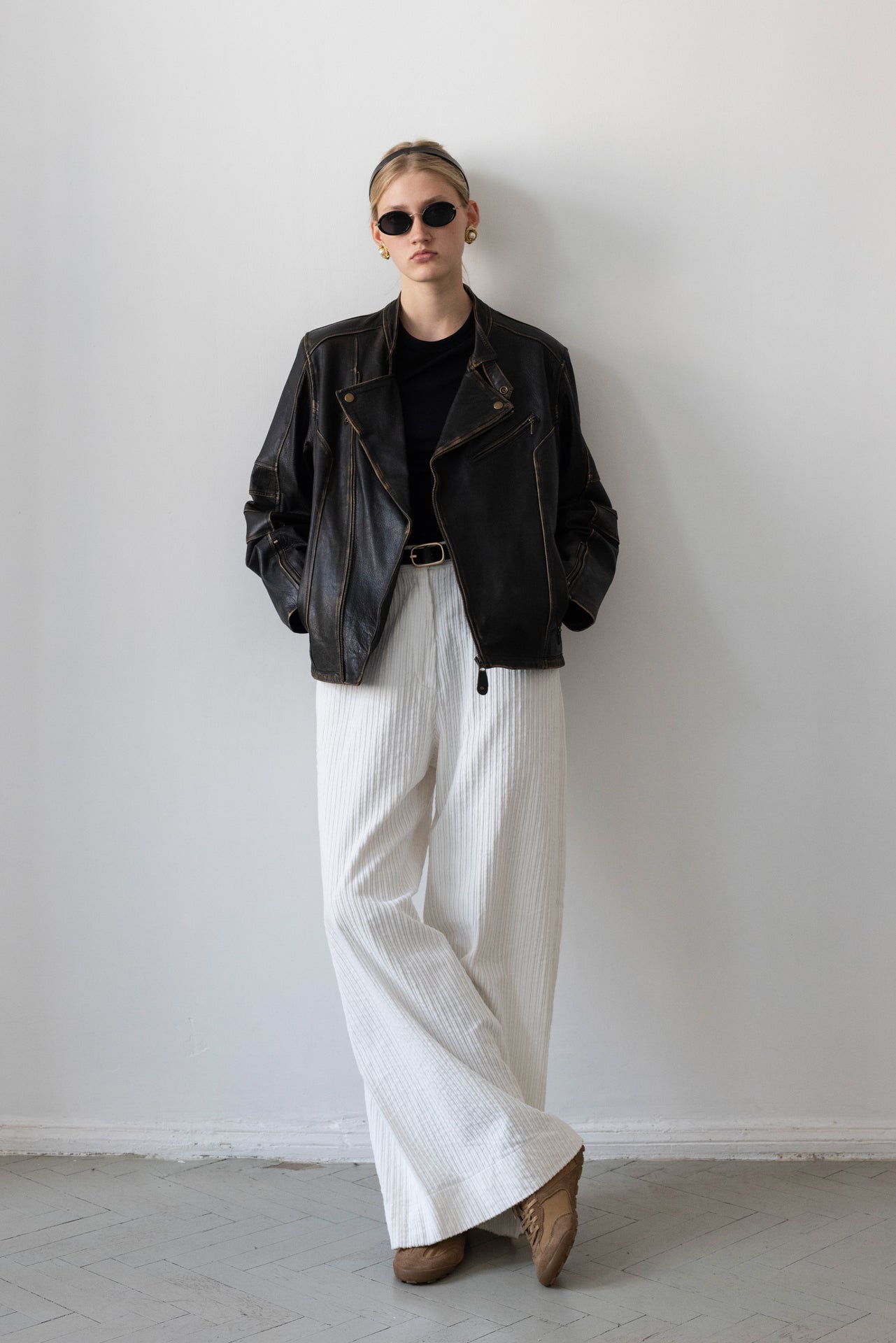 This vintage leather jacket is a one-of-a-kind piece with its own story, handpicked for its timeless character and lived-in charm. Made to last and made to stand out, it brings effortless edge to any wardrobe. A true forever piece — yours to make moïo (mine). Label: Aviatrix. Material: genuine leather; lining: 100% polyester. In great vintage condition. Each piece holds a past — and may show soft traces of it.